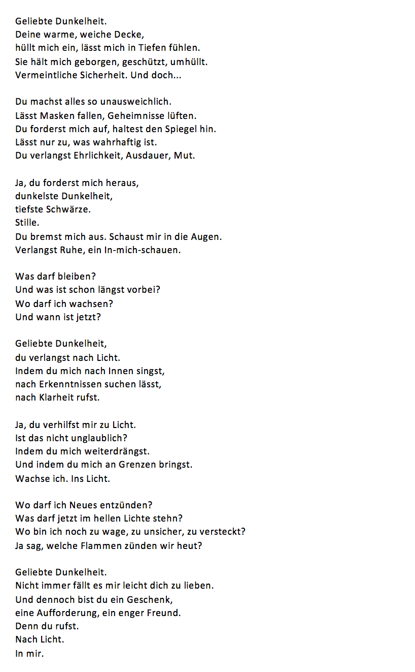 Geliebte Dunkelheit Verfasst vonLiviaDezember 20, 2021Veröffentlicht inAllgemeinSchlagwörter:Achtsamkeit, Dunkelheit, Licht, Schattenarbeit Teilen mit: Auf Facebook teilen (Wird in neuem Fenster geöffnet) Facebook Auf Telegram teilen (Wird in neuem Fenster geöffnet) Telegram Auf WhatsApp teilen (Wird in neuem Fenster geöffnet) WhatsApp Email a link to a friend (Wird in neuem Fenster geöffnet) E-Mail Ähnliche Beiträge