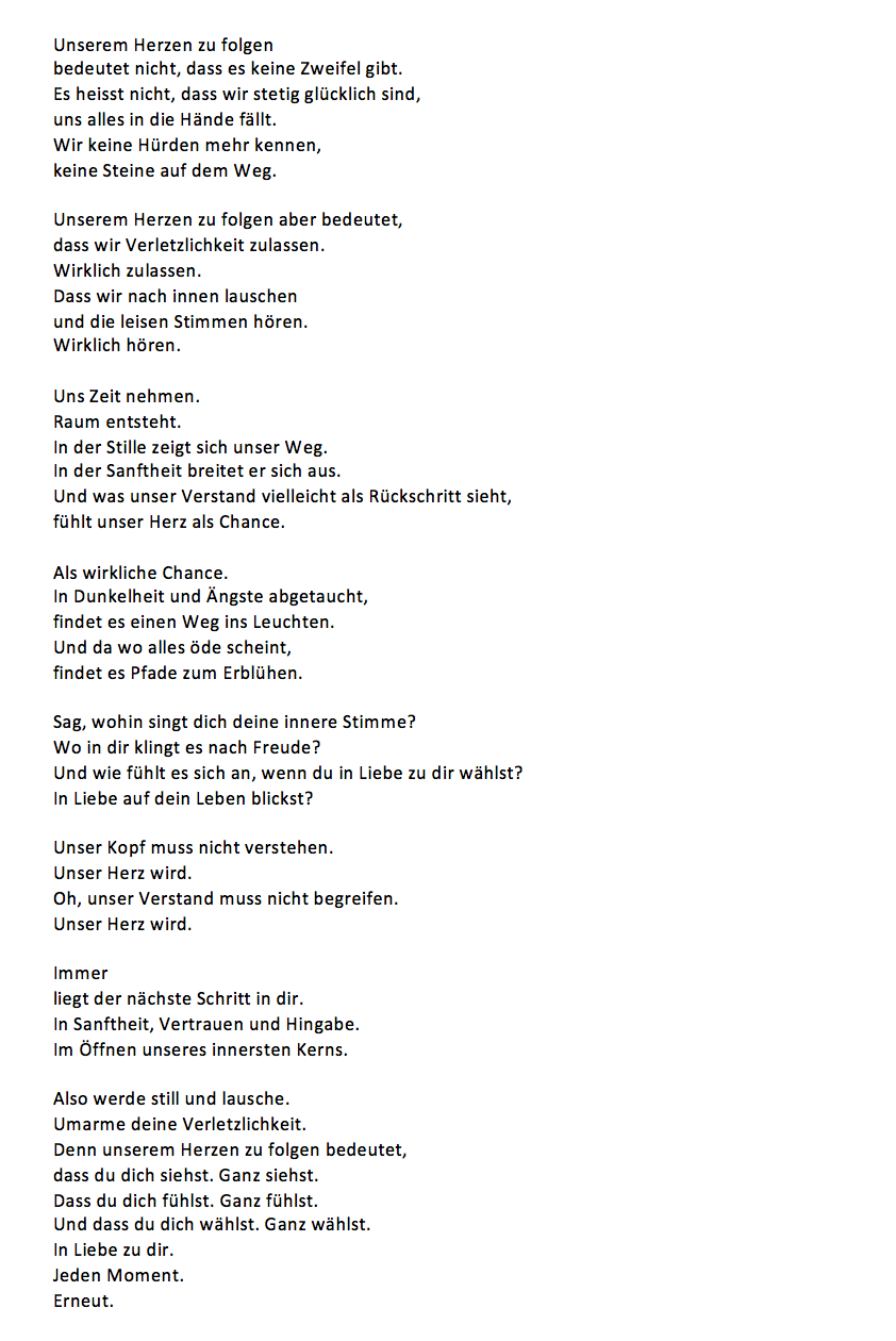 Was unserem Herzen folgen wirklich bedeutet Verfasst vonLiviaJuni 30, 2023Veröffentlicht inHerzensweg, Loslassen & HingabeSchlagwörter:Hingabe, Liebe, Selbstliebe, Spiritueller Weg Teilen mit: Auf Facebook teilen (Wird in neuem Fenster geöffnet) Facebook Auf Telegram teilen (Wird in neuem Fenster geöffnet) Telegram Auf WhatsApp teilen (Wird in neuem Fenster geöffnet) WhatsApp Email a link to a friend (Wird in neuem Fenster geöffnet) E-Mail Ähnliche Beiträge