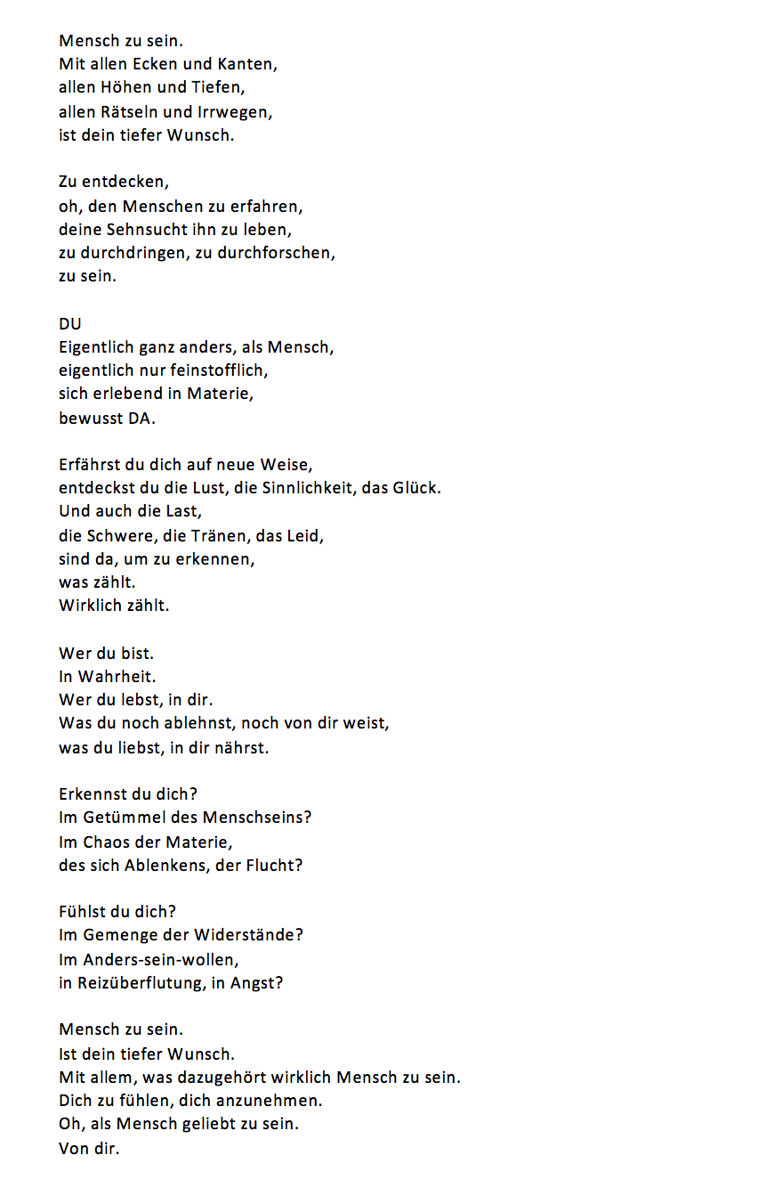 Mensch zu sein Verfasst vonLiviaAugust 11, 2023Veröffentlicht inBewusstseinswandel, Schattenarbeit, SelbstliebeSchlagwörter:Bewusstseinswandel, Liebe, Schattenarbeit Teilen mit: Auf Facebook teilen (Wird in neuem Fenster geöffnet) Facebook Auf Telegram teilen (Wird in neuem Fenster geöffnet) Telegram Auf WhatsApp teilen (Wird in neuem Fenster geöffnet) WhatsApp Email a link to a friend (Wird in neuem Fenster geöffnet) E-Mail Ähnliche Beiträge