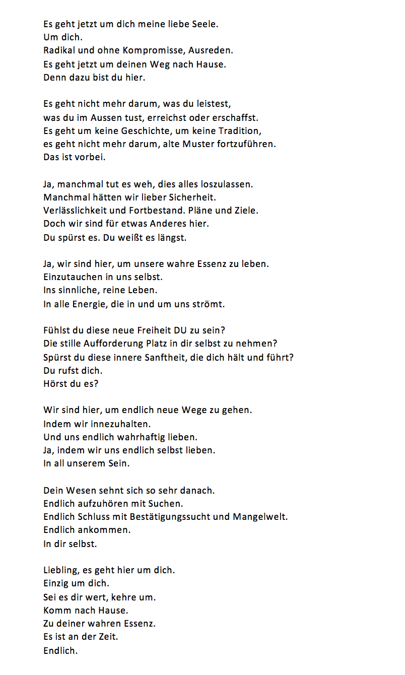 Ruth lächelte und atmete bewusst bis in die Zehenspitzen. Sie sah vor ihrem inneren Auge, wie die Energie durch ihren Körper floss und plötzlich geschah etwas, was sie so in dieser Form noch nie erlebt hatte. Sie ließ los. Für einen kurzen Moment nur verschmolz sie mit dem Jetzt. Hörte auf zu kämpfen. Öffnete ihr Sein für die Feinstofflichkeit.