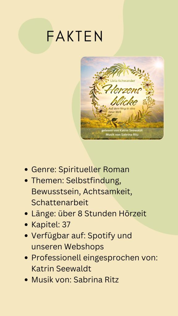 Du möchtest den spirituellen Roman „Herzensblicke“ als Hörbuch beziehen? Hier findest du alle wichtigen Informationen dazu.